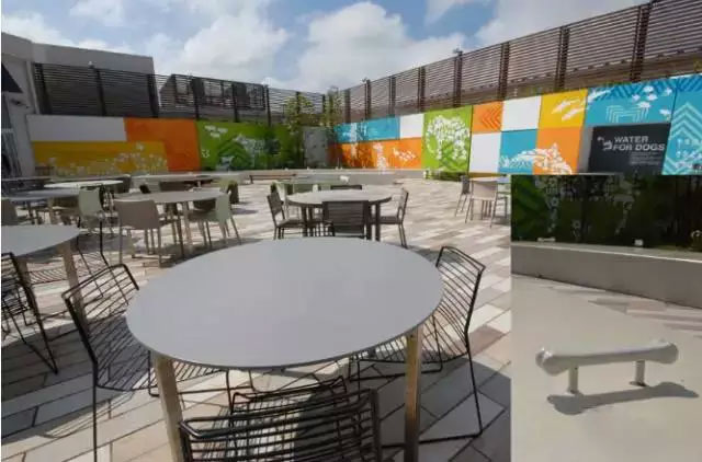 ↑木更津三井奧特萊斯購(gòu)物城是一座海濱小鎮(zhèn),很多日本人會(huì)帶狗前來(lái),這是專門(mén)開(kāi)辟的狗與主人的共同休息區(qū)——栓狗樁也很有創(chuàng)意